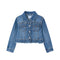 Chamarra Mayoral de manga larga para niña de 3 a 10 años. Cierre con botones a presión en la parte delantera. Tejido de mezclilla cómodo y combinable para los looks diarios. Diseño con holán en el bajo de la prenda.