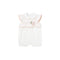 Pijama mameluco de manga corta para bebé niña de 1-2 a 18 meses. Cierre con botones a presión en la parte posterior. Botones a presión en la entrepierna para facilitar la puesta de la prenda. Elementos de adorno: aplique floral.