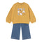 Conjunto Mayoral de suéter con pantalón largo a juego para bebé niña de 12 meses a 4 años. Suéter de líneas relajadas. Cuello redondo. Cierre con botones a presión en la parte posterior. Modelo con rizo. Elementos de adorno: bordados, serigrafía (print). Pantalón con cinturilla elástica. Tejido de mezclilla cómodo y combinable para los looks diarios.