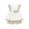 Conjunto Mayoral de blusa y short a juego para bebé niña de 9 meses a 4 años. Blusa de manga corta. Cuello redondo. Diseño con bajo asimétrico. Short de nuestra colección de prendas con diseño clásico, ideales para completar cualquier conjunto. Original exterior confeccionado con lino.