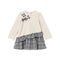 Vestido Mayoral de manga larga para bebé niña de 6 a 36 meses. Cierre central trasero con cremallera oculta. Elementos de adorno: bordados, aplique de moño, holán decorativo. Motivo de cuadros.