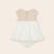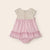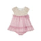 Conjunto de dos piezas para bebé niña de 1-2 a 18 meses formado por un vestido con braguitas a juego. Vestido de manga corta. Cierre con cremallera trasera invisible. Confección combinada con cuerpo y falda en distintos tejidos para conseguir un diseño único y especial.