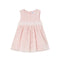 Vestido sin mangas para bebé niña de 6 a 36 meses. Cierre con cremallera trasera invisible. Mezcla de tejidos combinados para lograr un diseño único y diferente. Elegante fajín a la cintura.