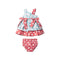 Conjunto de dos piezas para bebé niña de 6 a 24 meses formado por un vestido con braguitas a juego. Vestido de tirantes. Cierre con cremallera trasera invisible. Modelo con forro interior. Elementos de adorno: moño. Motivo de flores y lunares. Braguita exclusivos de nuestra colección. Goma elástica en la cintura para un mejor ajuste.