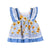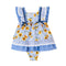 Conjunto de dos piezas para bebé niña de 6 a 24 meses formado por un vestido con braguitas a juego. Vestido de tirantes. Modelo con cuello cuadrado. Cierre con cremallera de botones. Modelo con forro interior. Elementos de adorno: detalles de puntilla, lazos decorativos en la parte delantera. Motivo de flores y rayas. Braguita exclusivos de nuestra colección. Goma elástica en la cintura para un mejor ajuste.