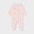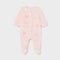 Pijama de punto estampado de cerezas para recién nacida niña de 0 a 6 meses. Pijama de manga larga para recién nacida niña Cuello redondo con holán. Cierre con botones a presión. Suave tejido de algodón elástico. Tiene de adorno dibujos de cerezas en la parte delantera.