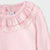 Pañalero de manga larga para bebé niña de 6 a 36 Meses. Cuello redondo con holán. Cierre con botones a presión en la parte posterior para facilitar la puesta de la prenda. Cierre con botones a presión en la entrepierna.