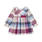Vestido Mayoral de manga larga para bebé niña de 6 a 36 meses con puños elásticos. Cierre con cremallera trasera invisible. Elementos de adorno: moño, olanes decorativos. Motivo de cuadros.