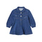 Vestido Mayoral de manga larga para bebé niña de 6 a 36 meses. Cuello camisero. Cierre con botones en la parte delantera. Cómodo y suave tejido de mezclilla de algodón elástico. Elementos de adorno: apliques florales.