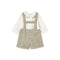 Original conjunto Mayoral para bebé niño de 2-4 a 18 meses. Body de manga larga. Cuello camisero. Cierre con botones a presión en la parte posterior. Botones a presión en la entrepierna para facilitar la puesta de la prenda. Cierre con botones en la parte delantera. Pantalón corto con tirantes. Cierre con botones. Cinturilla elástica. Detalle de bajo con vuelta. Motivo de pata de gallo.