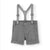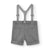 Bermuda Boboli con tirantes para bebé niño en tejido de punto fantasía en color gris. La bragueta se abrocha con botón hasta la talla 12 meses y con botón y cremallera desde la talla 18 meses. La cintura es ajustable con una goma elástica interior con ojales y un botón a ambos lados. Los tirantes son de color gris. Disponible de la talla 6 meses a 6 años.