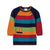 Vestido para bebé niña en tricotosa a rayas en varios colores, abrochado con botones por hombro izquierdo. Como decoración tiene un bolsillo en lado derecho con un bordado que es la carita de un conejo, dando un toque divertido al vestido. Disponible de la talla 6 meses a 6 años. Instrucciones de lavado: Lavar a máquina, temperatura máxima 30 C. No usar lejía. No se puede secar con secadora. Planchar a temperatura baja, máximo 110 C. No admite el lavado en seco.