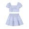Original set Mayoral de dos piezas para niña de 4 a 10 años. Top de manga corta para niña. Elementos de adorno: detalles fruncidos de punto smock (nido de abeja), lazo. Motivo de rayas. Falda para niña. Cinturilla elástica. Este modelo lleva detalles de nido de abeja. Motivo de rayas.