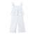 Original set Mayoral de dos piezas para niña de 3 a 10 años. Blusón de tirantes con holanes para niña. Tejido perforado original y fresco. Diseño con holán en el bajo de la prenda. Elementos de adorno: bordados. Pantalón para niña. Cinturilla elástica. Tejido perforado original y fresco.