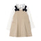 Conjunto Mayoral de playera con peto a juego para niña de 3 a 10 años. Playera de manga larga para niña. Cuello semi alto. Pequeña abertura en la espalda con cierre de botón para facilitar la puesta de la prenda. Vestido tipo jumper de tirantes para niña. Cuello recto. Cierre central trasero con cremallera oculta. Modelo con forro interior. Bolsillos funcionales en la parte delantera.