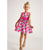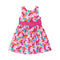 Vestido Mayoral sin mangas para niña de 4 a 10 años. Cuello redondo. Cierre con cremallera trasera invisible. Modelo con rizo. Elementos de adorno: lazo, fajín simulado a la cintura. Diseño estampado.