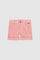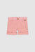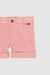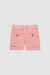 Bermuda satén elástico de bebé y niño. Tallas de la 6 meses a la 6 años. Color rosa. Se cierra con cremallera y botón. La decoración es una etiqueta con detalle de la marca.