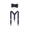 Set de tirantes elásticos para bebé niño. De tela con unos remates finales de cuero. Cierre con pinzas redondeadas. Corbatín con moño ajutable.