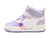Tenis botín de Frozen para niña con diseño encantador y luces LED en el costado. Cuenta con velcro y agujeta elástica para un ajuste fácil y cómodo. Ideal para darle estilo y diversión a cada paso. Fabricado con materiales duraderos, perfecto para el uso diario.