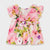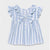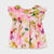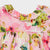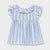 Blusa de manga corta para bebé niña de 6 a 36 meses con detalles de holanes. Cuello redondo con holán. Cierre con botones en la espalda para facilitar la puesta de la prenda. Mezcla de tejidos combinados para lograr un diseño único y diferente. Modelo con rizo. Moño de adorno en la parte posterior.