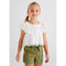 Playera de manga corta para niña de 3 a 9 años. Cuello redondo. Modelo de nuestra colección de prendas básicas con diseño clásico, ideales para completar cualquier conjunto. Cómodo tejido de punto. Elementos de adorno: hólan y perforada.