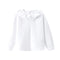 Blusa de fiesta para niña de 3 a 10 años, con plisado delantero. Cuello holán, manga larga con elastico en el puño y cierre de lagrima en espalda.
