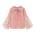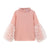 Blusa de 3 a 10 años para niña en bambula, de manga larga tipo globo en tejido de tul y cierre de moño en la espalda.