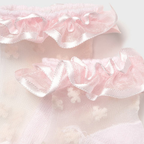 DescripciónCalcetín Mayoral para bebé niña de floresCaracterísticasCalcetines para bebé niña de 0 a 18 meses. Un accesorio perfecto para completar su look, dándole un toque diferente. Elementos de adorno: flores.Composición:...