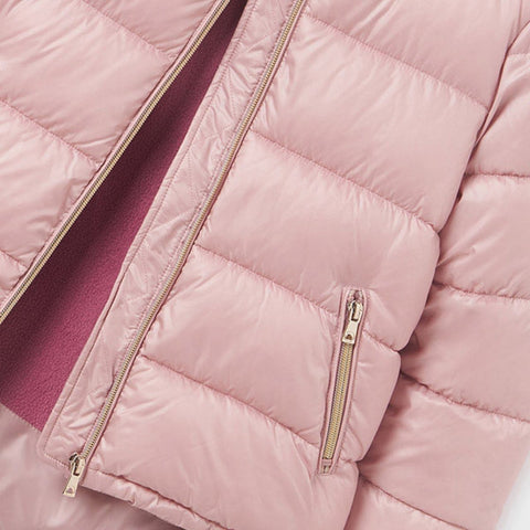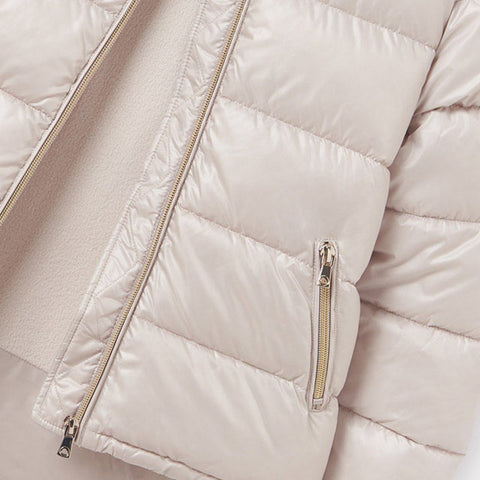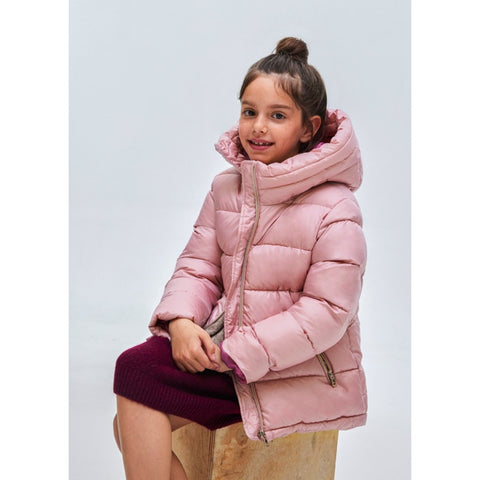 DescripciónChamarra Mayoral para niña acolchada con gorroCaracterísticasChamarra Mayoral de manga larga para niña de 10 a 18 años con puños elásticos. Cuello redondo. Cierre central delantero con cremallera. Bolsillos en...