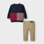 Conjunto de suéter con pantalón largo a juego para bebé niño de 6 a 36 meses. Suéter de manga larga con cuello redondo. Cierre con botones en el hombro. Tejido de punto tricotosa fino de tacto suave y agradable. Combinación bicolor. Pantalón con corte clásico y estilo elegante. Cintura con goma elástica y cierre con botón.