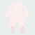 Mameluco de manga larga para bebé niña de 0 a 6 meses. Cuello redondo. Cierre con cremallera y botones a presión en la entrepierna. Estampado de caras. Este modelo cuenta con topos antideslizantes en la parte de la planta del pie.