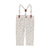 Pantalón largo para bebé niño de 6 meses a 6 años con tirantes. La bragueta se abrocha con botón hasta la talla 12 meses y con botón y cremallera desde la talla 18 meses. La cintura es ajustable con una goma elástica interior con ojales y un botón a ambos lados.