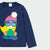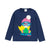 Playera de manga larga de punto elástico para niña de la talla 4 años a 16 años con un divertido estampado y un parche de plástico con lentejuelas de estrella dentro.
