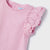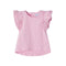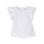 Camiseta de manga corta para bebé niña de 6 a 36 meses con detalles de volantes. Cuello redondo. Cierre con botones a presión ocultos que permitirán vestir la prenda con facilidad. Cómodo tejido de punto. Diseño con bajo asimétrico. Elementos de adorno: cinta bordada.