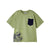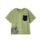 Playera de manga corta para niño de 3 a 9 años. Cuello redondo. Silueta relajada skater fit, con hombros caídos y patrón ligeramente oversize. Bolsillo funcional en la parte delantera. Diseño estampado.