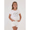 Original set de dos piezas para niña de 10 a 18 años. Prenda ECOFRIENDS, contiene algodón sostenible. Pantalón de tipo short. Cierre con un único botón. Bolsillos funcionales en el delantero y en la parte trasera de la prenda. Cinturón ajustable.
