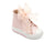Tenis botín Bambino para niña con agujetas, moño en tull con estrellas y cierre en costado