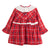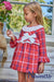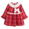 Vestido de cuadros rojos con cuello y volante blanco, prefecto moño grande blanco100% Algodón