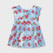 Vestido Mayoral para bebé niña de popelín de manga corta estampado flores con efecto denim para bebé niña de 6 a 36 meses.