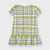 Vestido de manga corta para niña de 3 a 9 años. Cuello redondo. Diseño con corte en caderas. Cierre con cremallera trasera invisible. Diseño estampado a cuadros.