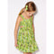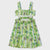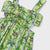 Vestido de tirantes para niña de 3 a 9 años. Cuello cuadrado. Tejido de aspecto fresco y actual con lino. Diseño con abertura en la espalda. Elementos de adorno: aplique de moño. Diseño estampado.