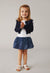 Vestido para bebé niña con estampado de corazones, tejido crepe fantasía. Tallas de la 6m a la 6 años. Se cierra con cremallera. La decoración es una etiqueta con detalle de la marca.