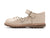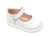 Zapato Coqueta para niña con holanes en escote y traba con velcro.